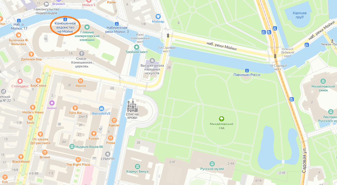 Место отправления: наб. реки Мойки, 4 (причал "Конюшенное ведомство" у храма "Спас-на-крови")