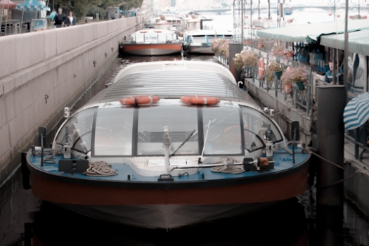 Речной трамвай - это теплоход, предназначенный для экскурсий или прогулок с пассажирами по малым рекам и каналам Петербурга. Размер и высота теплохода-речного трамвая позволяет проходить под низкими мостами рек Мойки, Фонтанки и многочисленных каналов в центре Санкт-Петербурга. В небольшой шторм и дождливую погоду желательно находиться внутри салона. При подходе к мосту, пассажирам находящимся снаружи, желательно не вставать со стульев, чтобы не задеть пролеты головой.