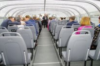 Речной трамвай имеет закрытую от непогоды зону (закрытый панорамный салон) и открытую палубу. Вместительность от 20 человек до 55 человек. В прохладную погоду пассажирам для утепления выдаются пледы. Теплоход можно заказать в аренду для проведения индивидуальной интересной экскурсии или для водной прогулки на развод мостов для корпоративной компании или группы.